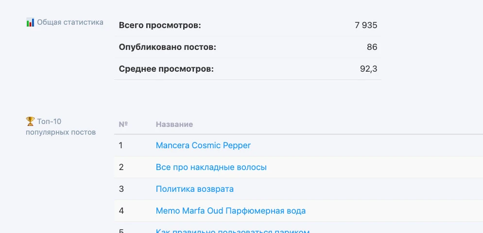 - 📊 Статистика и топ-10 постов